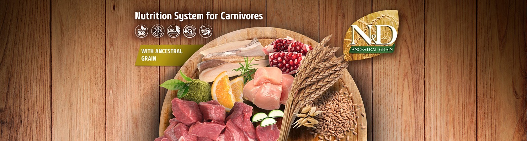 Años de investigación en cooperación con la Cátedra de Nutrición Animal de la Universidad de Nápoles Federico II llevaron al equipo de investigación de Farmina Vet al desarrollo de un sistema nutricional centrado en la naturaleza carnívora de los miembros de nuestra familia de cuatro patas: N&D Ancestral Grain, el alimento nutricional. sistema para carnívoros con más del 90% de proteínas de origen animal de alto valor biológico y sólo unos pocos cereales ancestrales, cebada y avena: