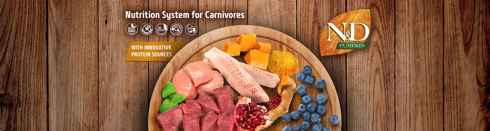 Los perros y gatos, por naturaleza, comen casi exclusivamente carne y no necesitan muchos carbohidratos. Siguiendo esta filosofía, desarrollamos la línea N&D Calabaza con una completa gama de alimentos elaborados sin cereales, con un 96% de proteínas de origen animal y calabaza, con grandes propiedades nutricionales.